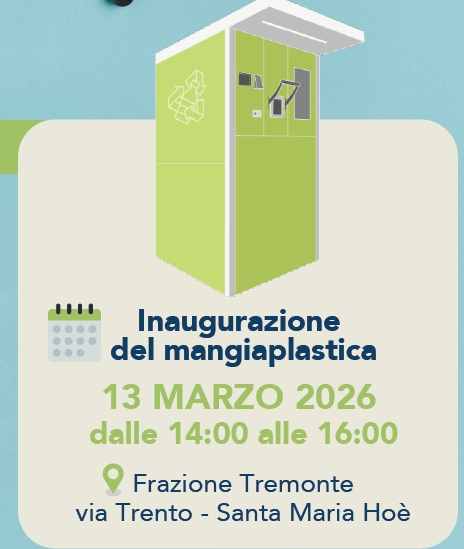 Il 9 marzo 2026 verrà attivato il nuovo mangiaplastica situato in frazione Tremonte - Via Trento